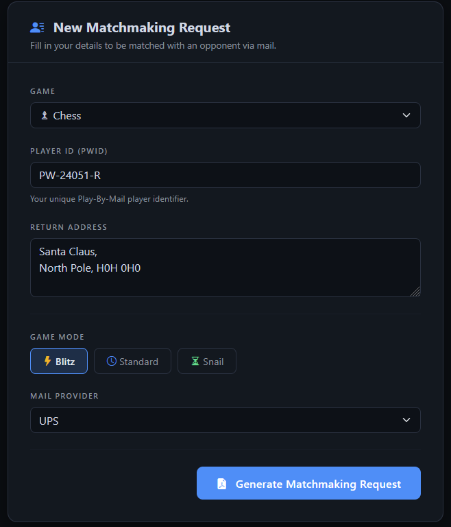 • Blitz: Utilizing Postal Wizards one-of-a-kind hybrid infrastructure, we support up to 48 hour matchmaking time*, allowing for intense postal gaming.